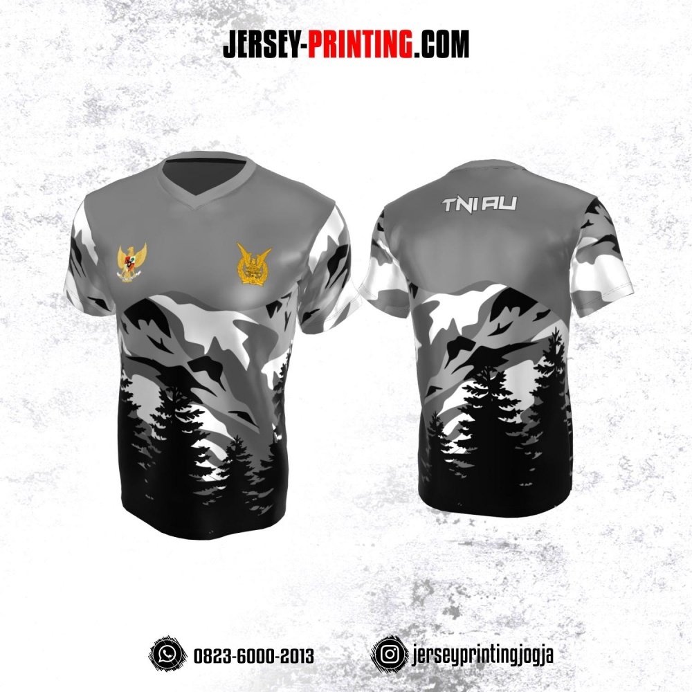 Jersey Militer Tentara TNI AU Angkatan Udara Abu-abu Hitam Putih Motif Abstrak