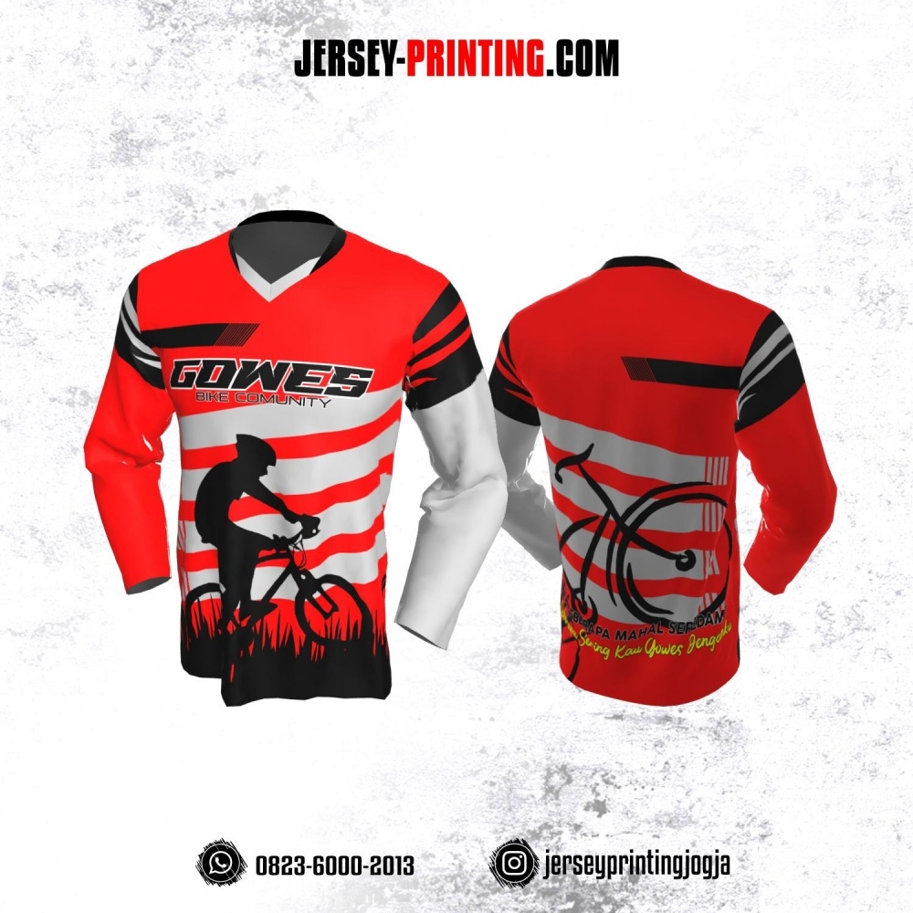 Jersey Gowes Sepeda Hitam Merah Abu Lengan Panjang