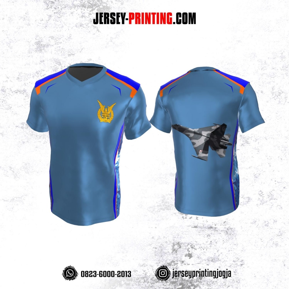 Jersey Militer Tentara TNI AU Angkatan Udara Biru Navy Orange Motif Loreng