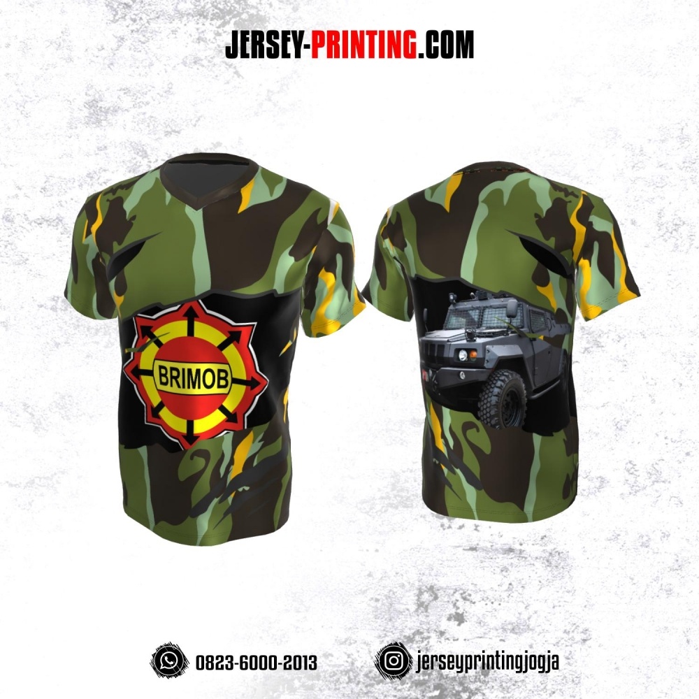 Jersey Polisi Brimob Hijau Coklat Hitam Kuning Motif Abstrak