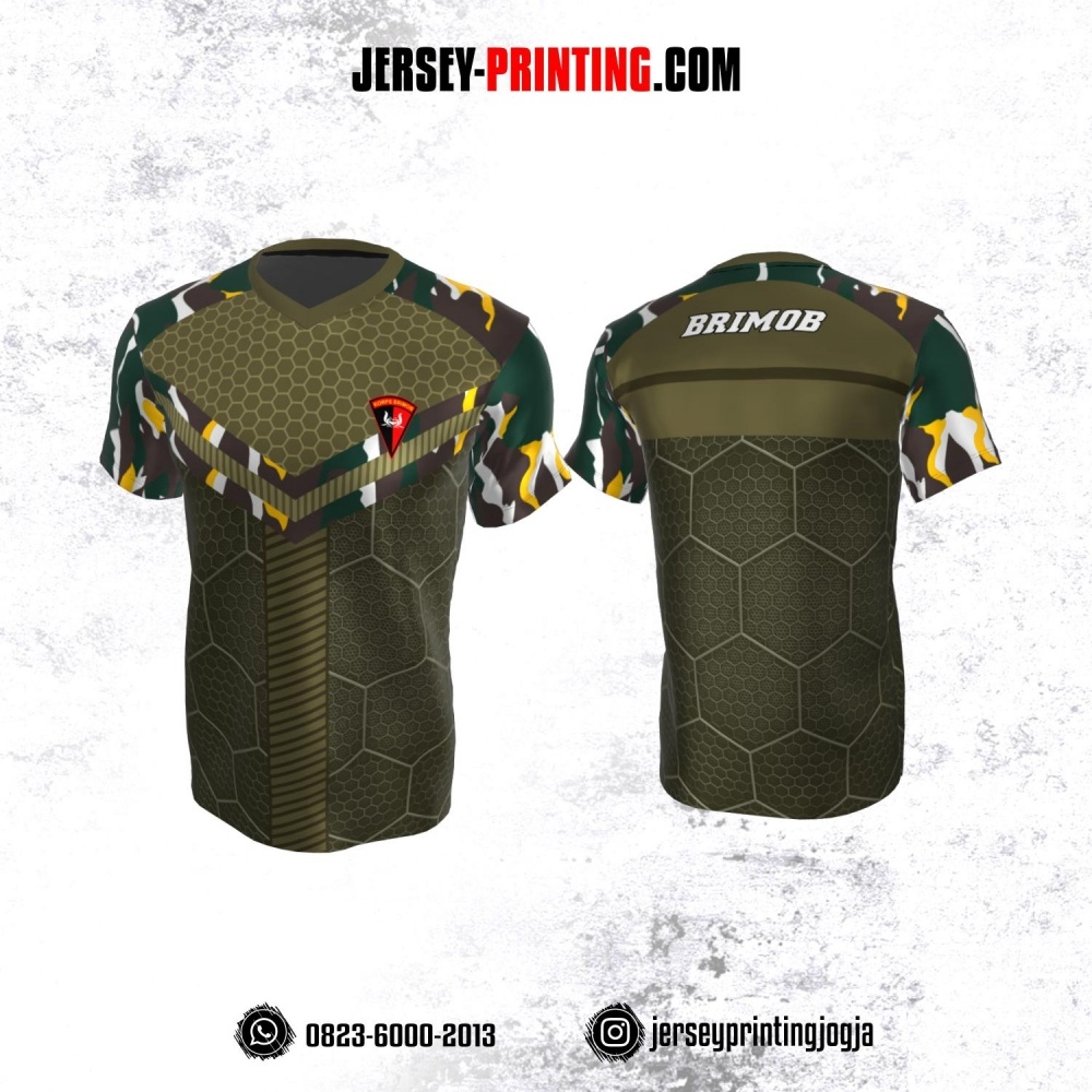 Jersey Polisi Brimob Hijau Coklat Putih Kuning Motif Honeycomb