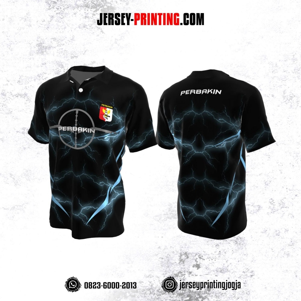 Baju Kaos Jersey Menembak Perbakin Kerah Polo Hitam Motif Kilat Biru