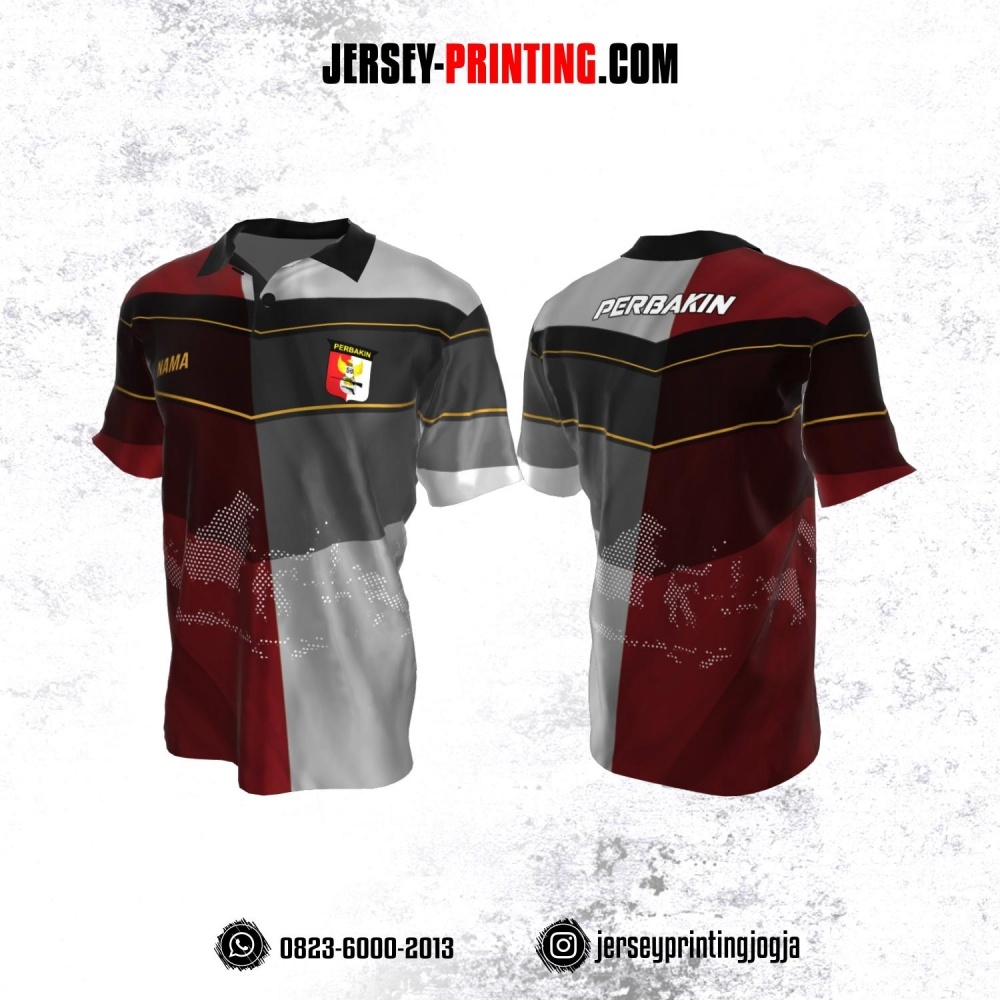 Baju Kaos Jersey Menembak Perbakin Kerah Polo Abu-abu Merah Putih Motif Peta Indonesia