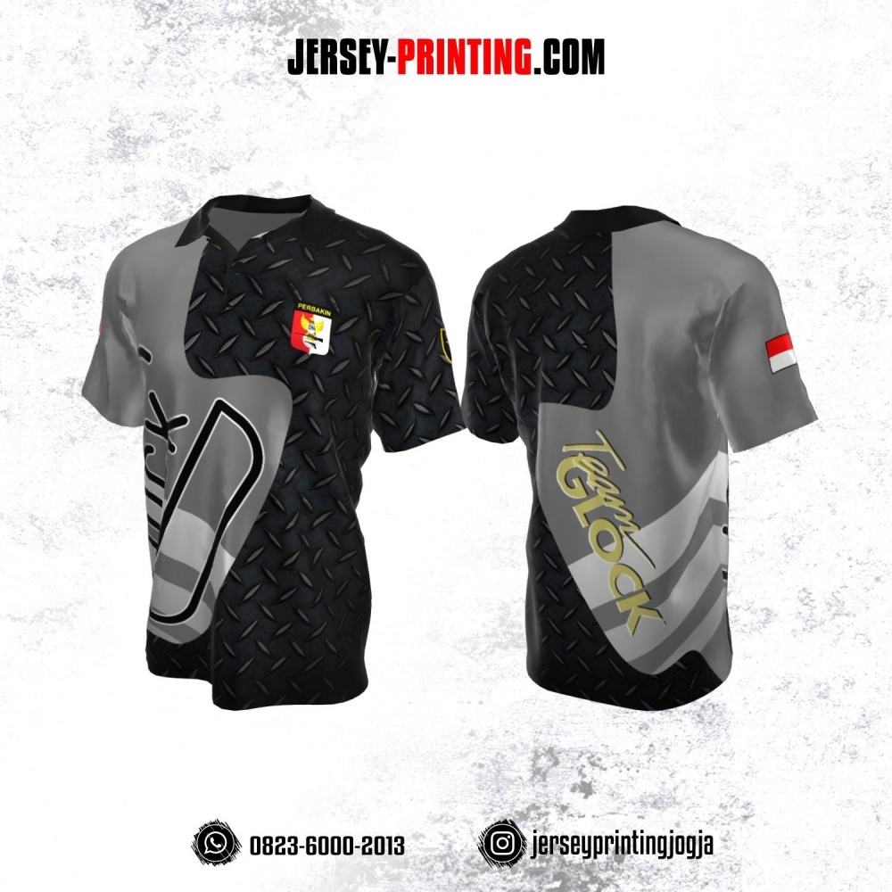 Baju Kaos Jersey Menembak Perbakin Kerah Polo Abu-abu Hitam Motif Seamless