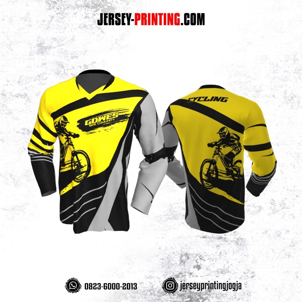 Jersey Gowes Sepeda Kuning Abu Hitam Lengan Panjang