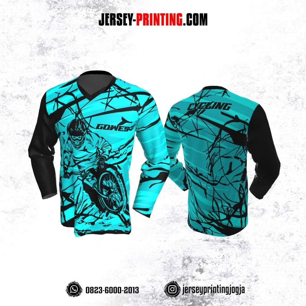 Jersey Gowes Sepeda Hitam Biru Tosca Lengan Panjang
