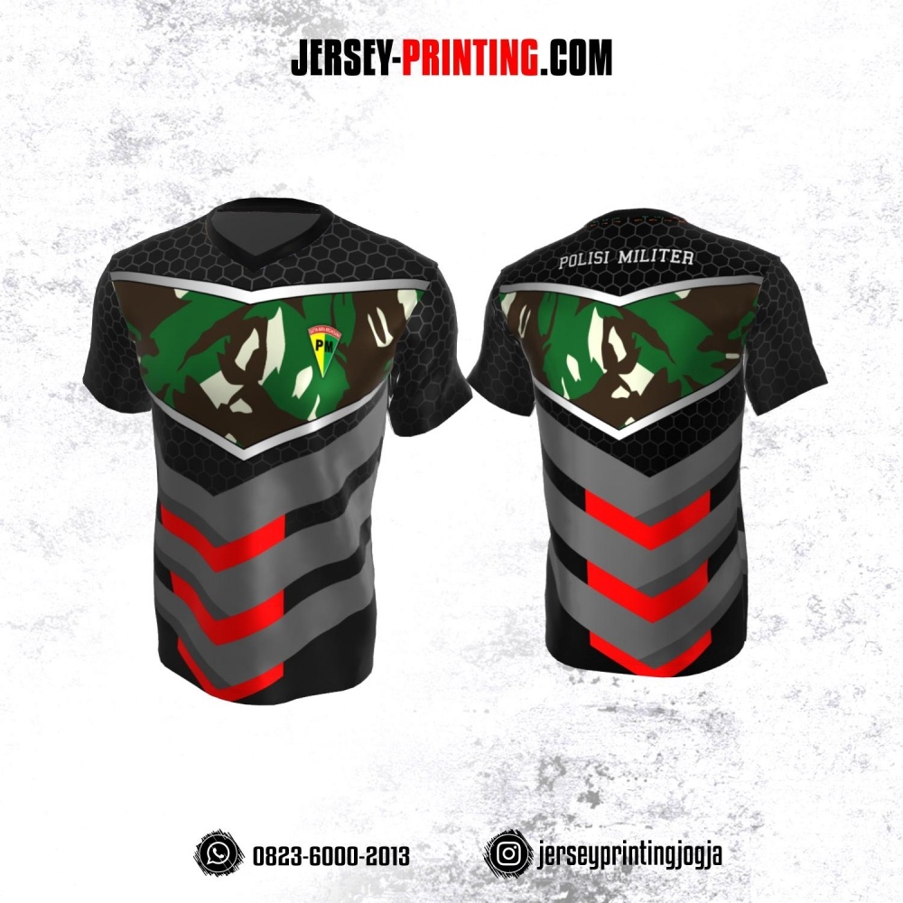 Jersey Polisi Militer PM Hitam Abu-abu Hijau Merah Motif Loreng dan Honeycomb