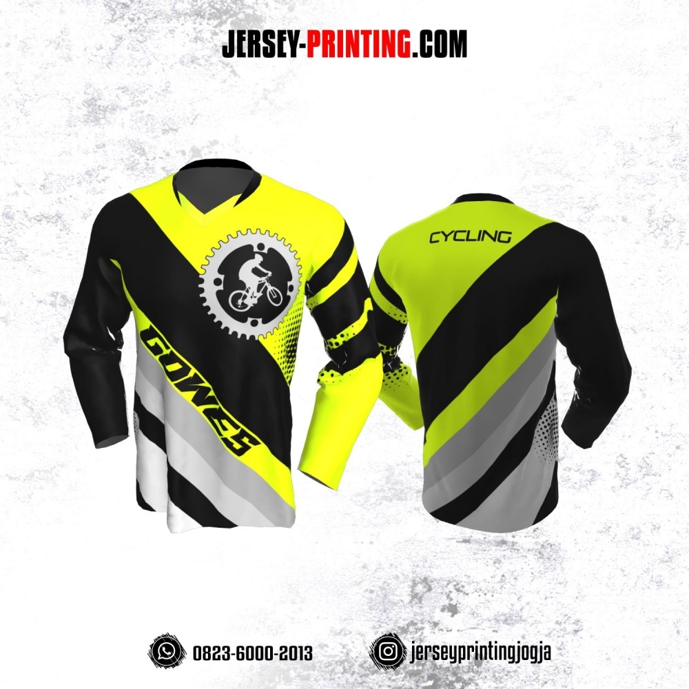 Jersey Gowes Sepeda Kuning Hitam Abu Lengan Panjang