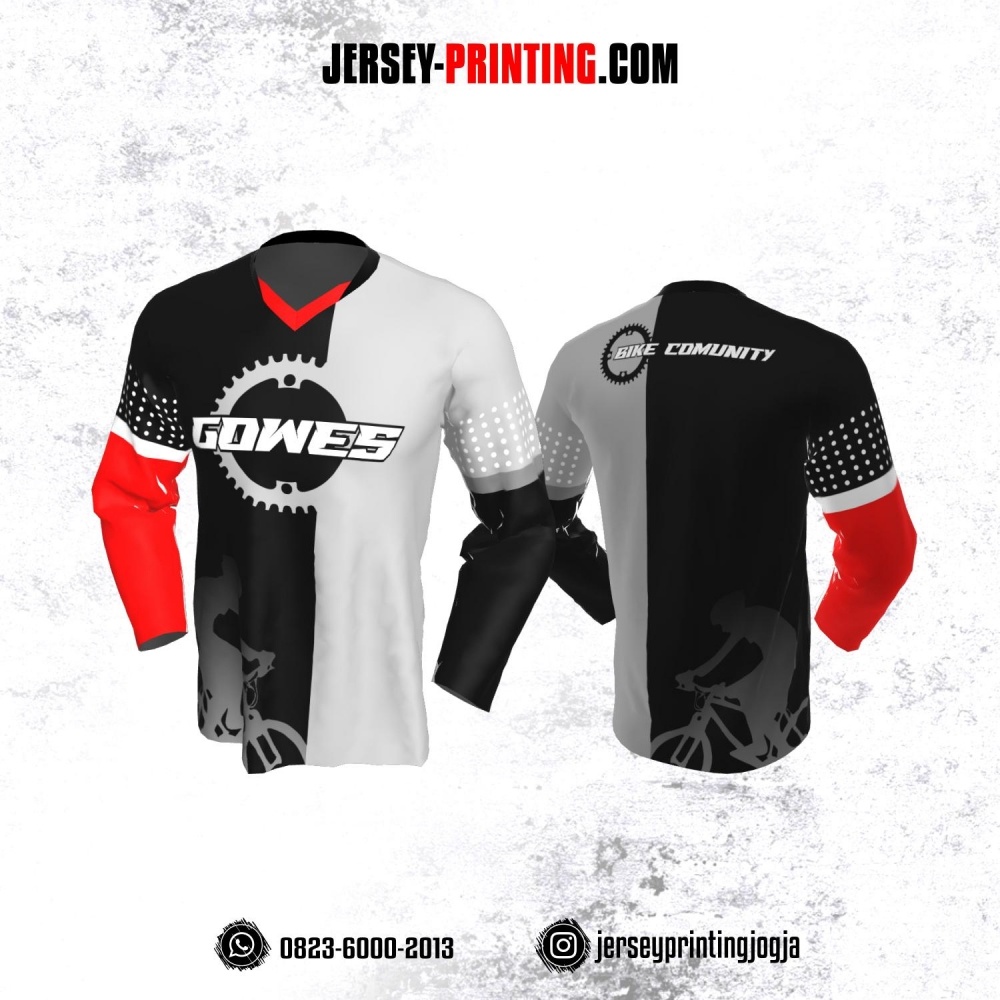 Jersey Gowes Sepeda Hitam Abu Merah Lengan Panjang
