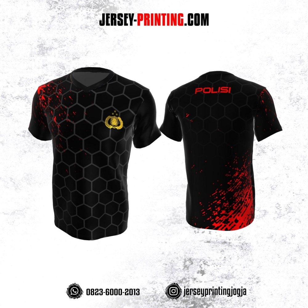 Jersey Polisi Polri Hitam Motif Honeycomb Abu-abu dan Bercak Merah
