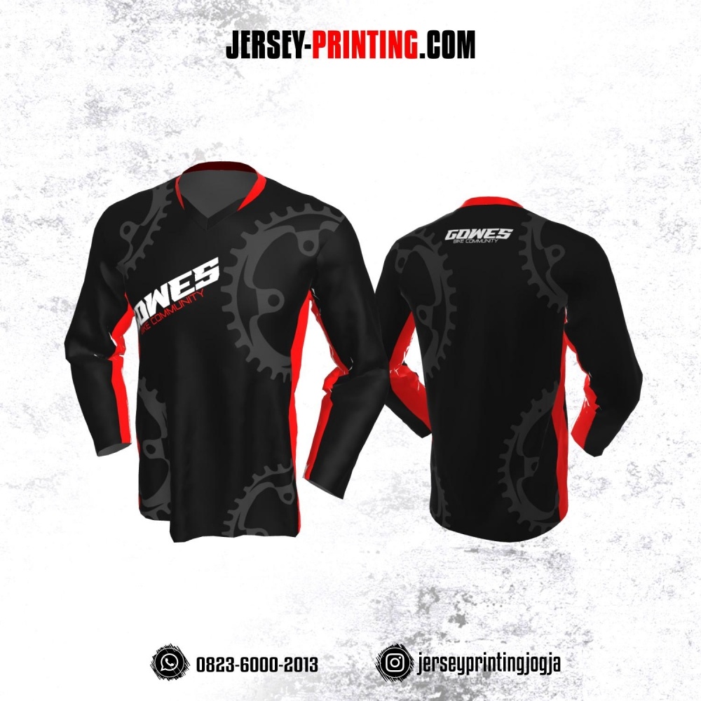 Jersey Gowes Sepeda Hitam Merah Abu Lengan Panjang
