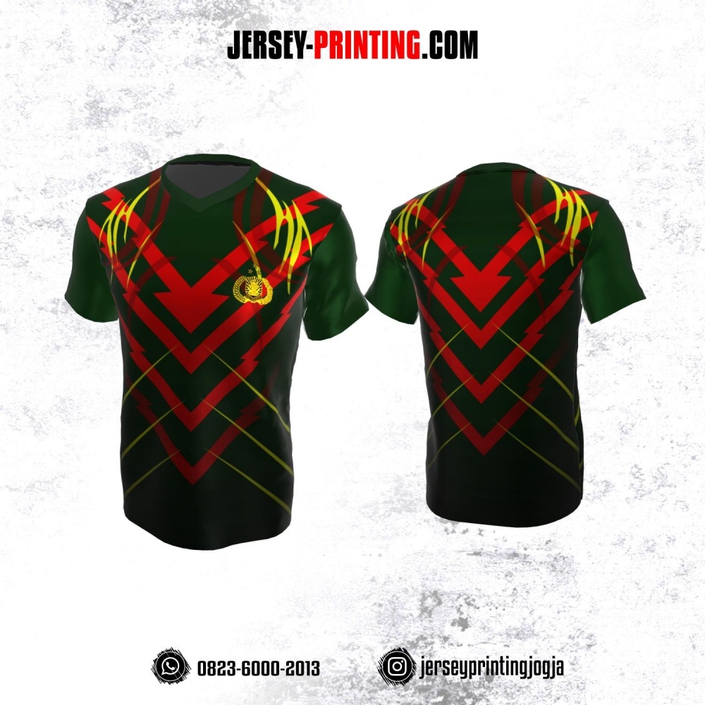 Jersey Polisi Polri Hijau Merah Kuning Motif Abstrak