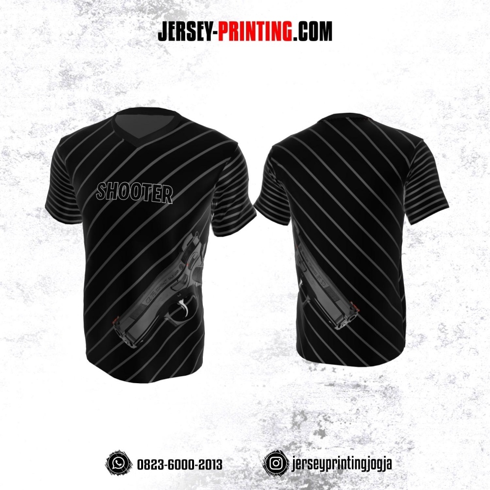 Baju Kaos Jersey Menembak Shooter Shooting Hitam Motif Garis Abu-abu
