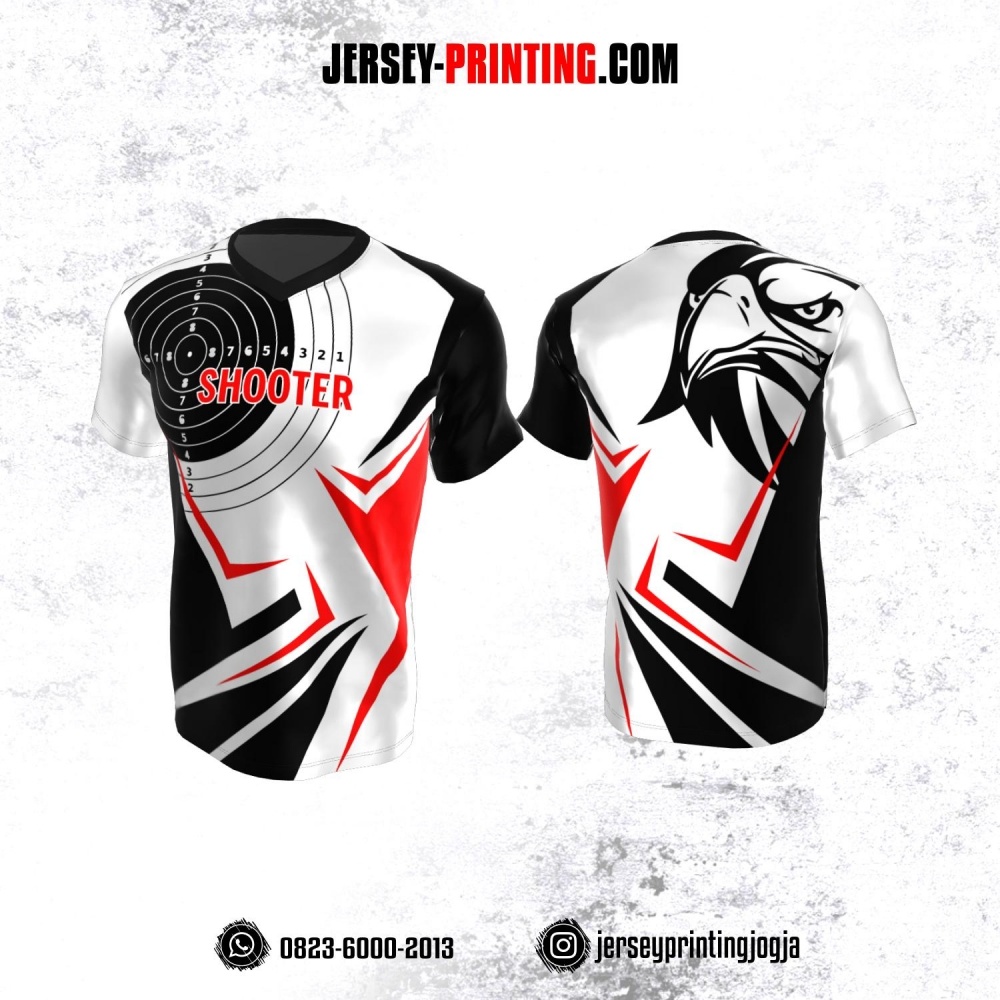 Baju Kaos Jersey Menembak Shooter Shooting Putih Corak Hitam Merah