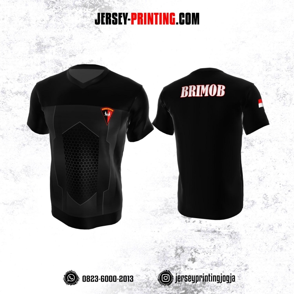 Jersey Polisi Brimob Hitam Abu-abu Motif Honeycomb