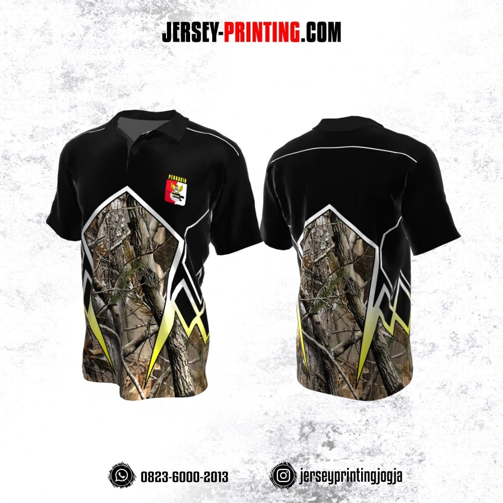 Baju Kaos Jersey Menembak Perbakin Kerah Polo Hitam Coklat Putih Kuning Motif Camo