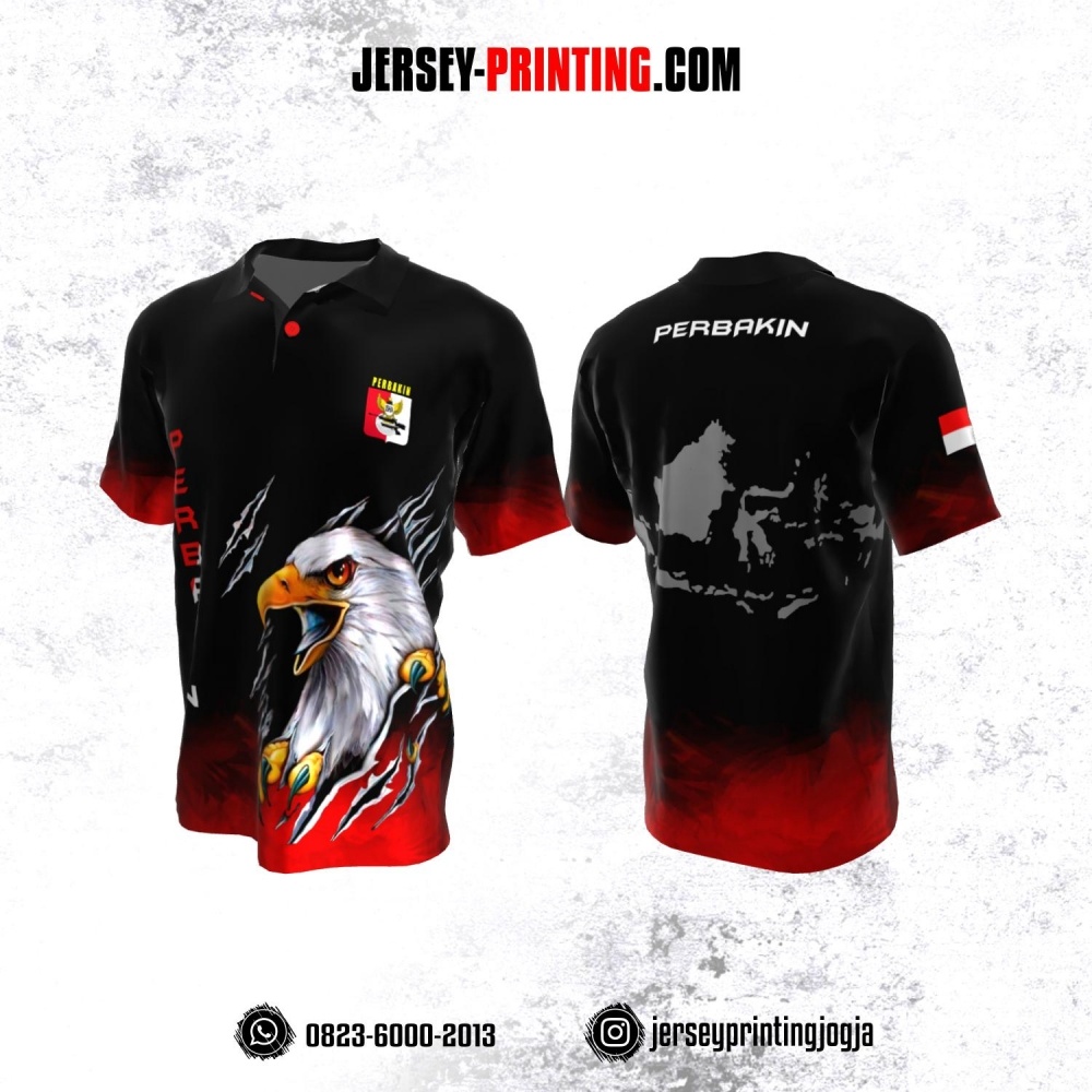 Baju Kaos Jersey Menembak Perbakin Kerah Polo Hitam Merah Putih Kuning Motif Elang