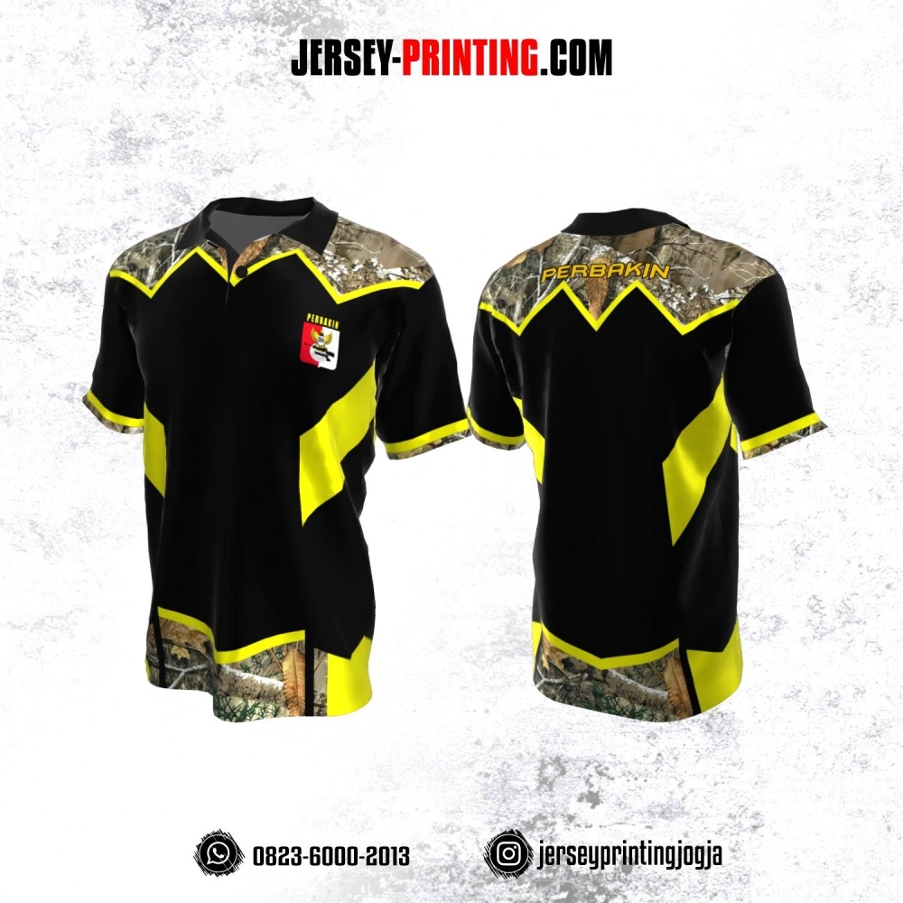 Baju Kaos Jersey Menembak Perbakin Kerah Polo Hitam Kuning Coklat Motif Camo