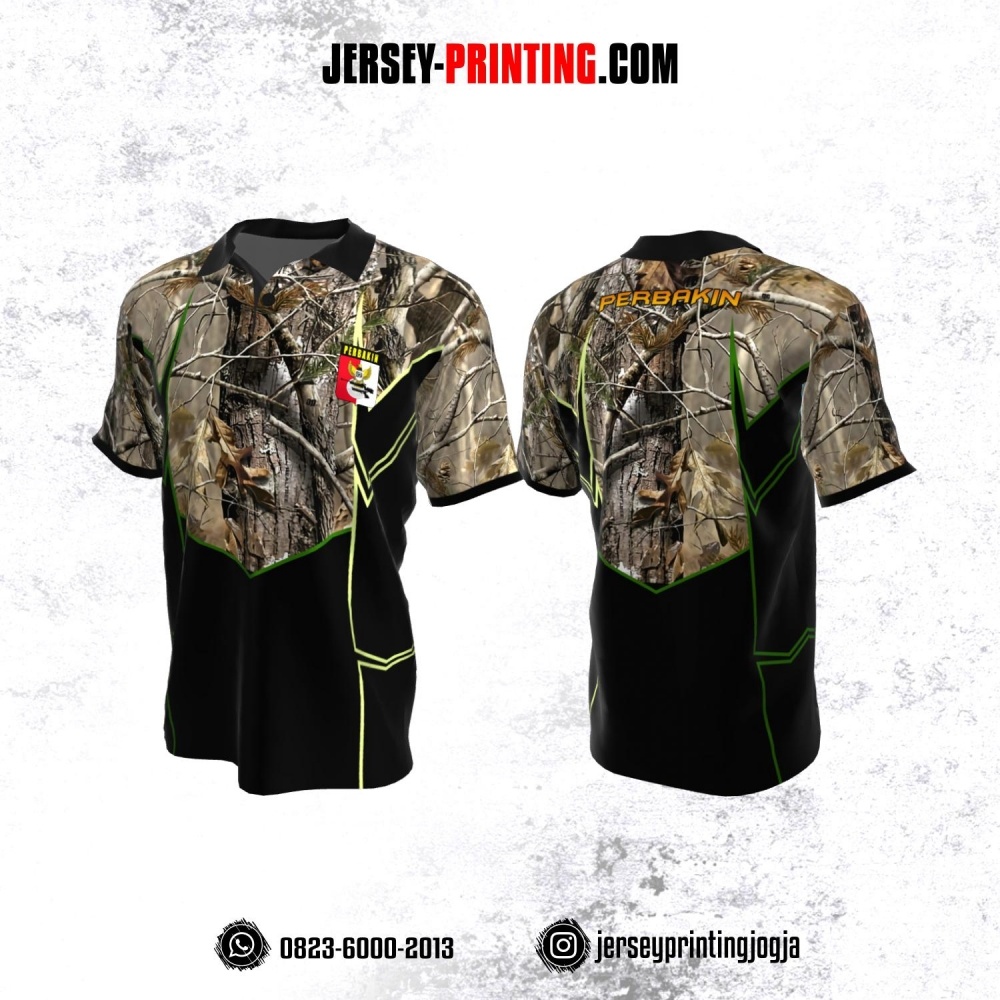 Baju Kaos Jersey Menembak Perbakin Kerah Polo Hitam Coklat Hijau Motif Camo
