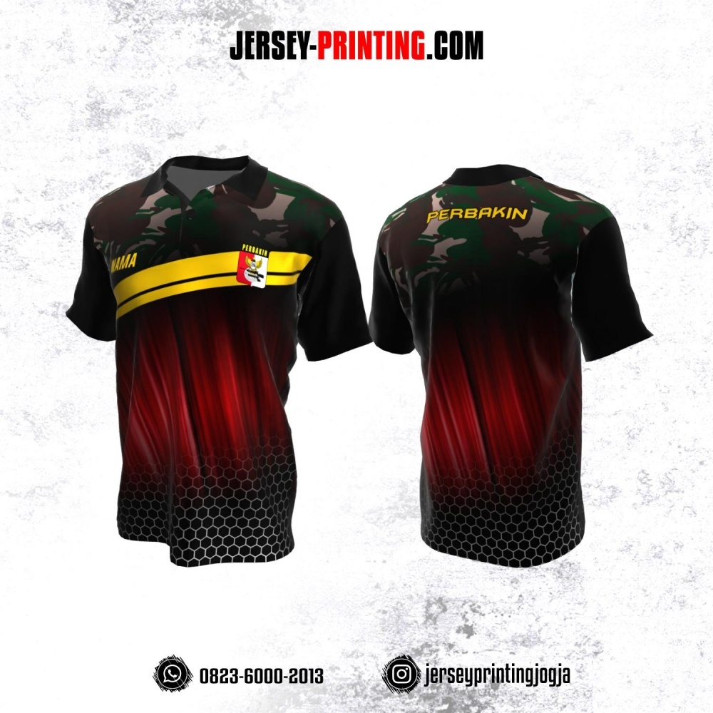 Baju Kaos Jersey Menembak Perbakin Kerah Polo Hitam Merah Putih Kuning Motif Honeycomb