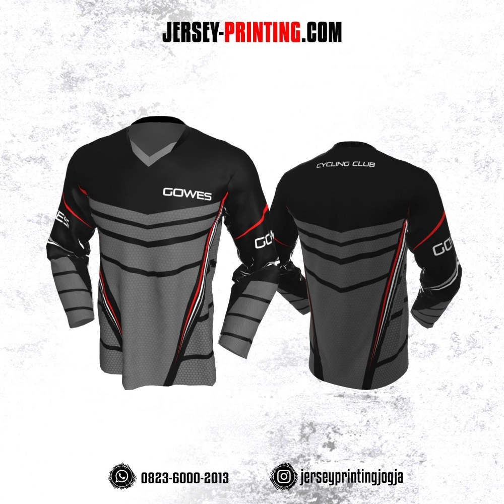Jersey Gowes Sepeda Hitam Merah Abu Lengan Panjang