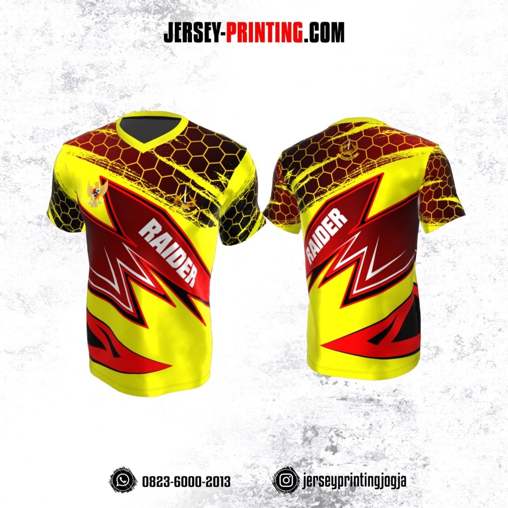 Jersey Militer Tentara TNI AD Angkatan Darat Kuning Merah Hitam Motif Honeycomb