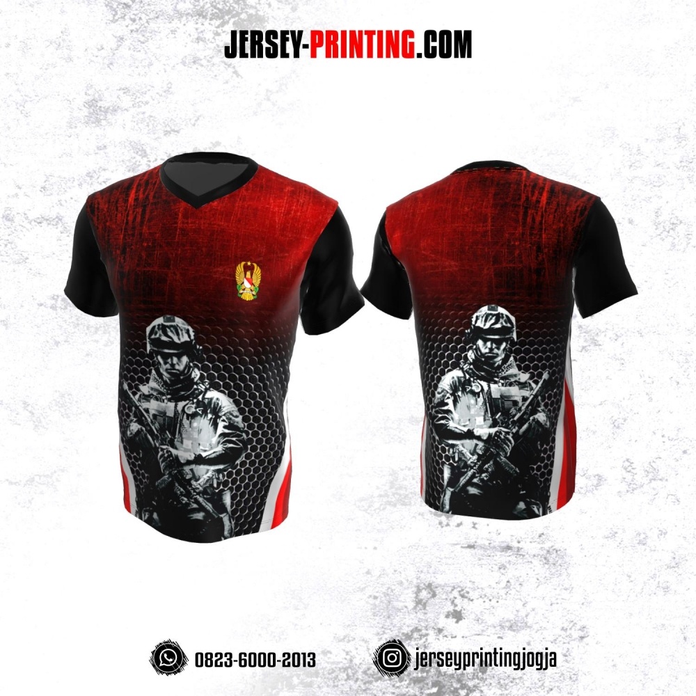 Jersey Militer Tentara TNI AD Angkatan Darat Abu-abu Merah Hitam Motif Honeycomb
