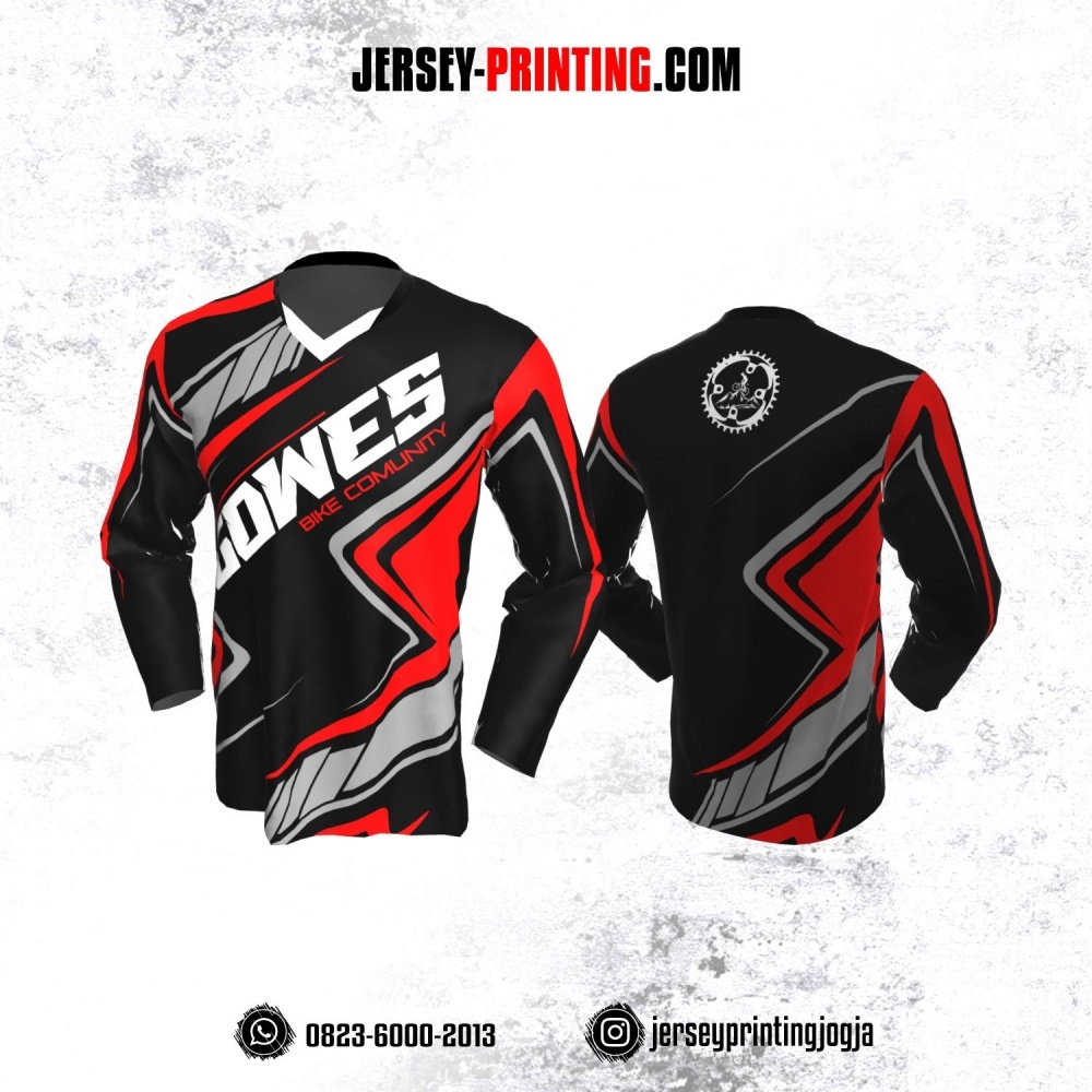 Jersey Gowes Sepeda Hitam Abu-Abu Merah Lengan Panjang