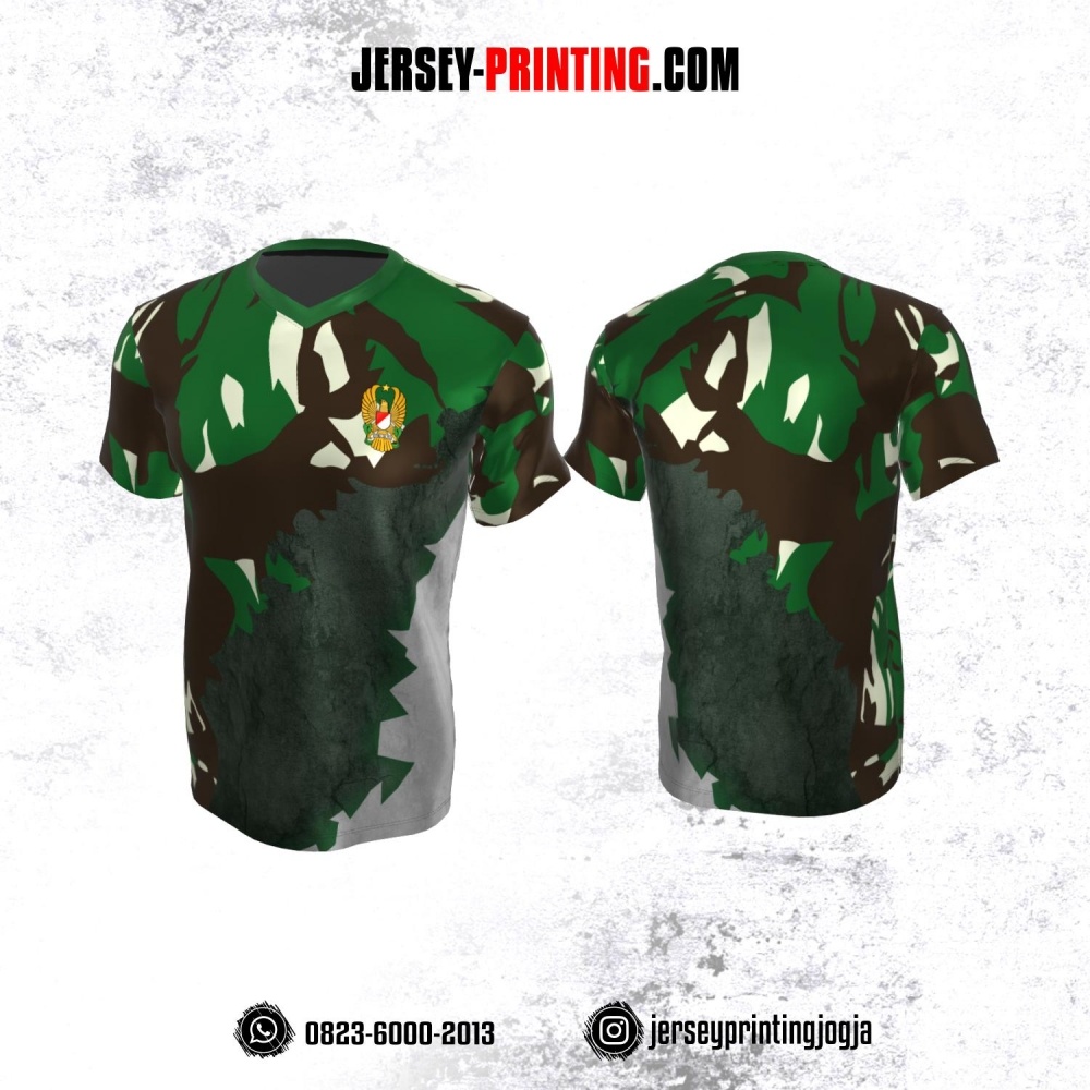 Jersey Militer Tentara TNI AD Angkatan Darat Hijau Coklat Abu-abu Motif Loreng