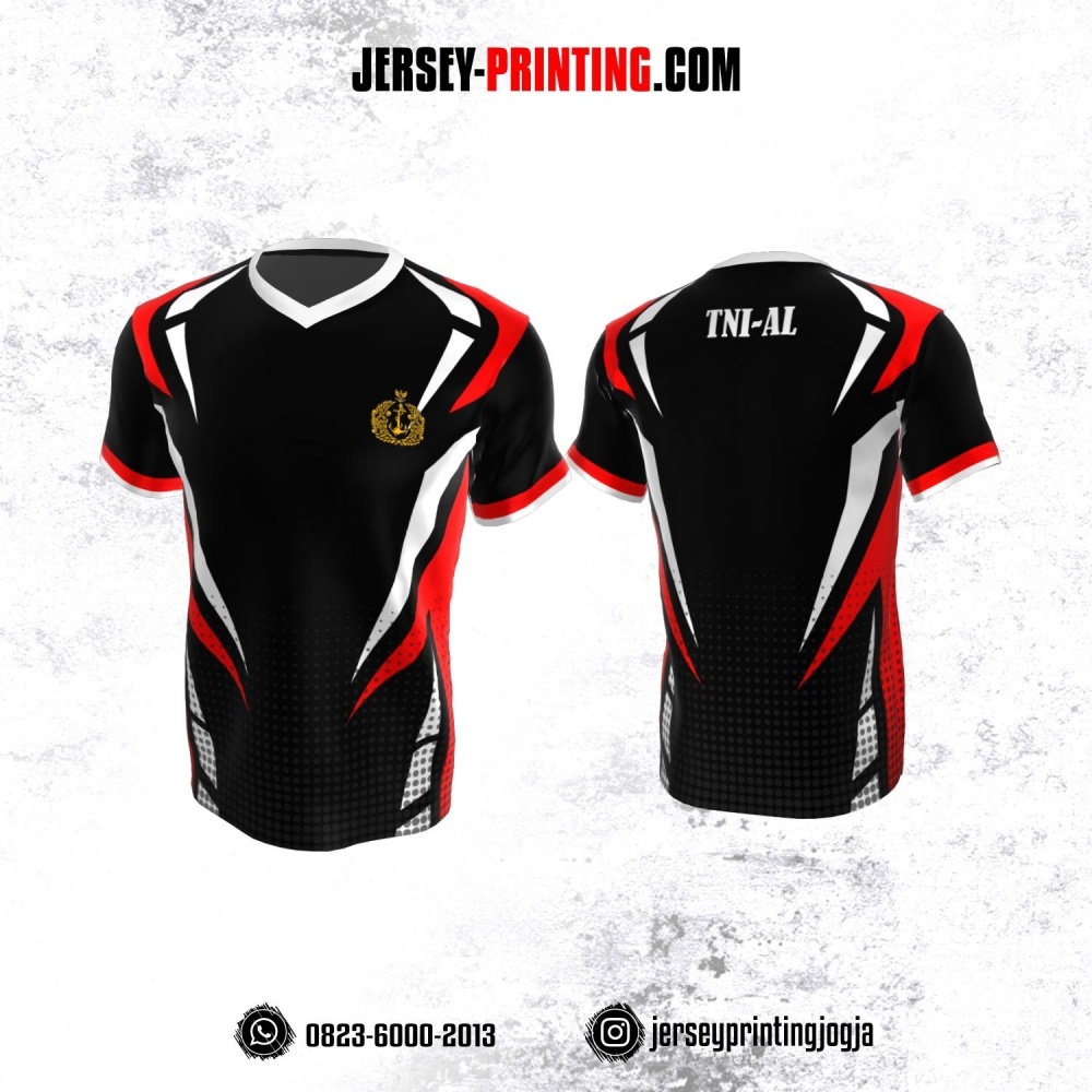 Jersey Militer Tentara TNI AL Angkatan Laut Hitam Merah Putih Motif Polkadot Abu-abu