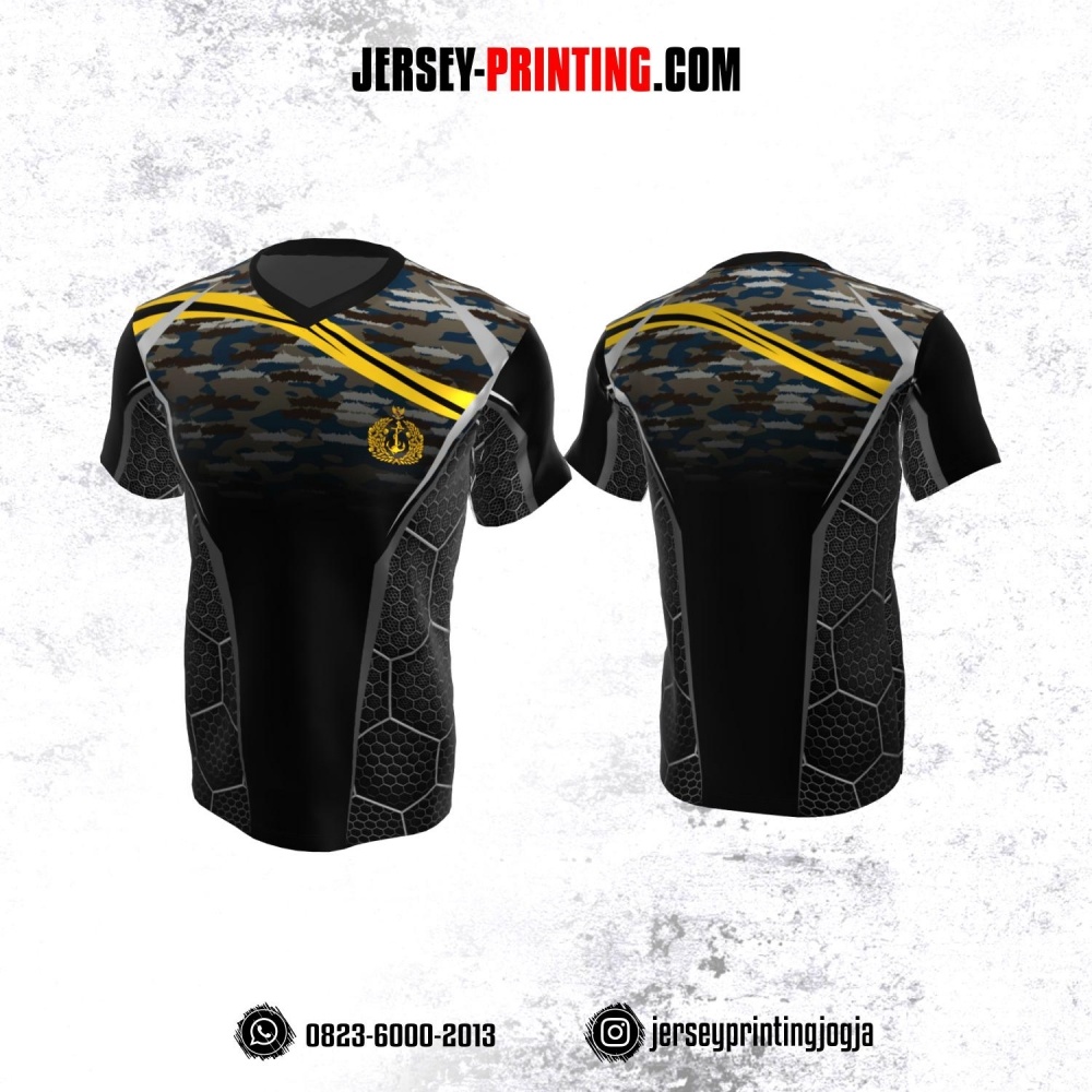 Jersey Militer Tentara TNI AL Angkatan Laut Abu-abu Hitam Coklat Biru Kuning Motif Honeycomb dan Loreng