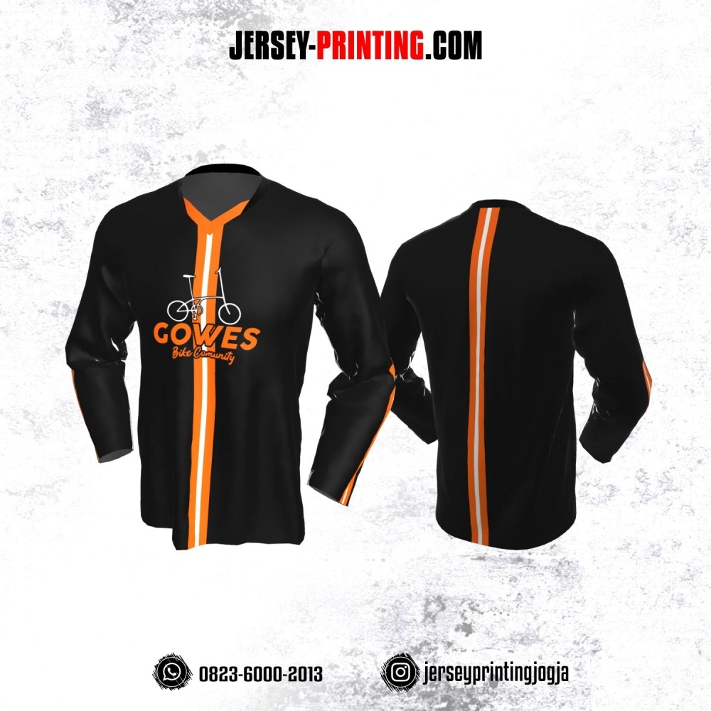 Jersey Gowes Sepeda Hitam Orange Putih Lengan Panjang