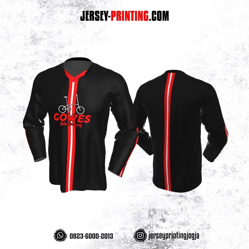 Jersey Gowes Sepeda Hitam Merah Putih Lengan Panjang