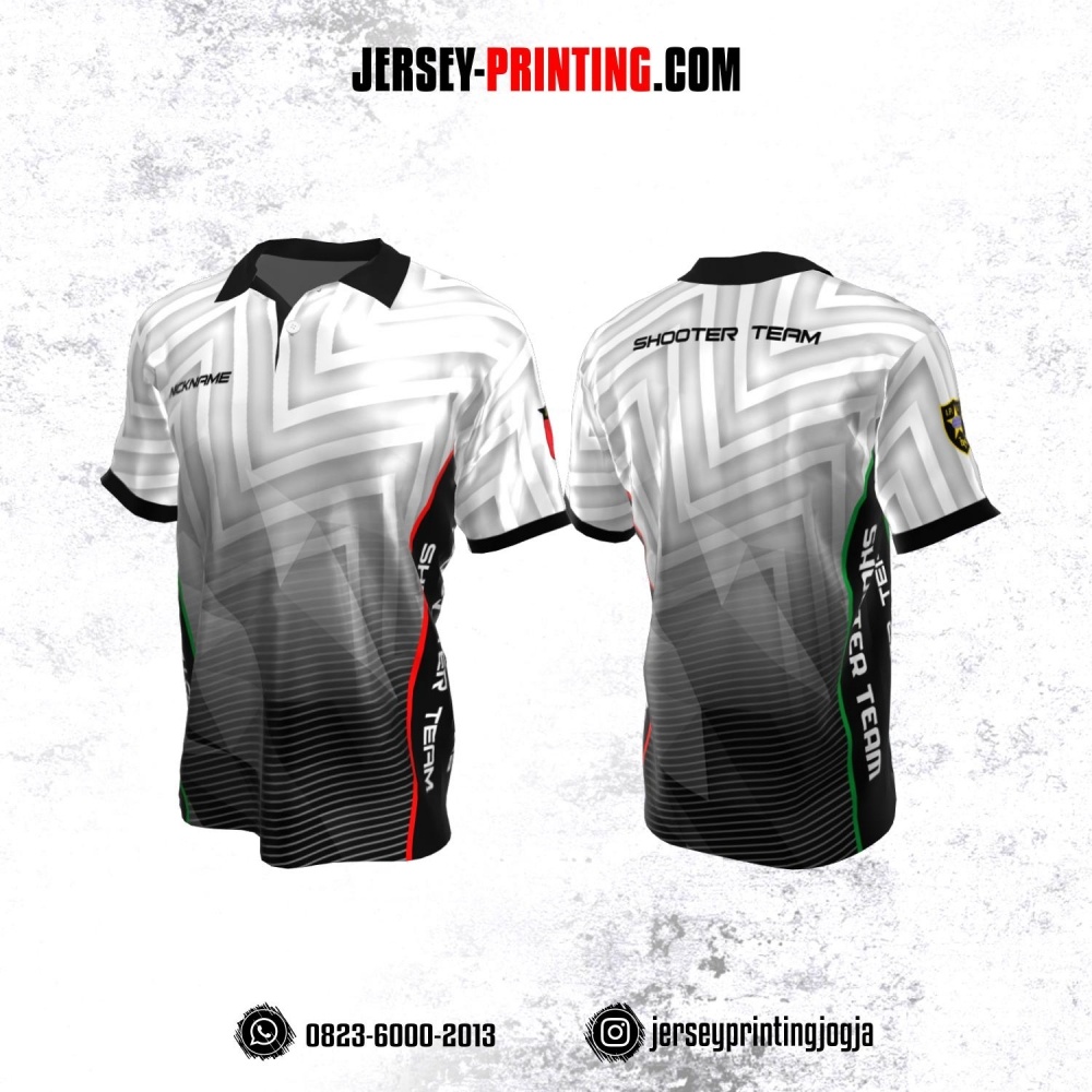 Baju Kaos Jersey Menembak Perbakin Kerah Polo Abu-abu Putih Hitam Motif Garis