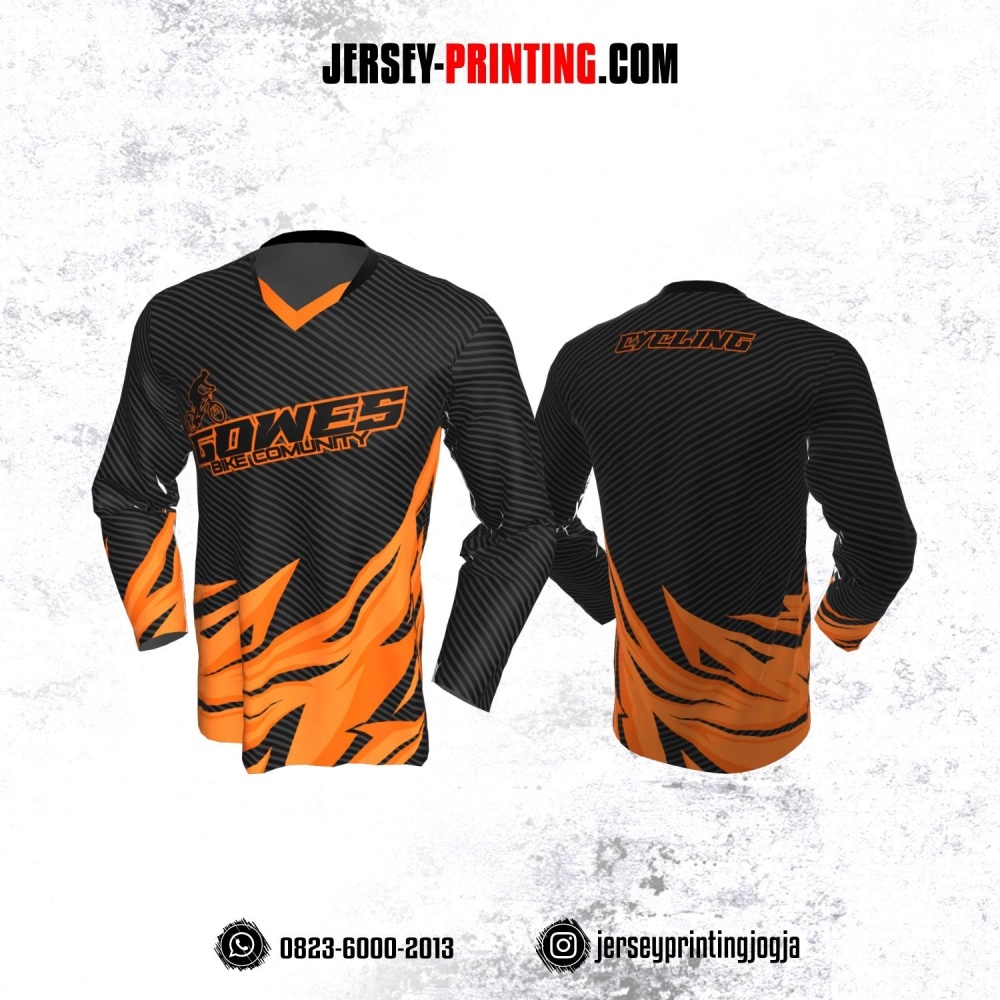 Jersey Gowes Sepeda Hitam Orange Abu Strip Lengan Panjang