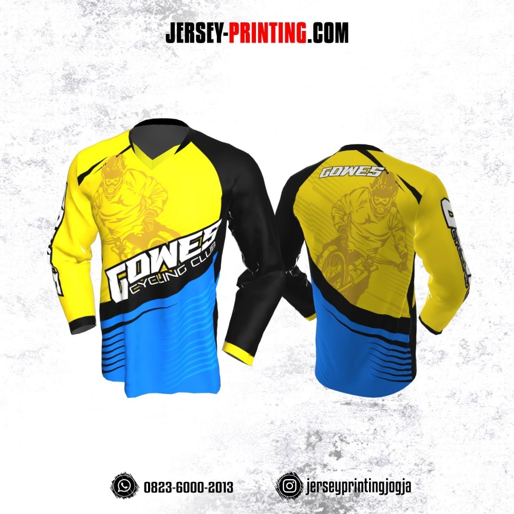 Jersey Gowes Sepeda Hitam Kuning Biru Lengan Panjang
