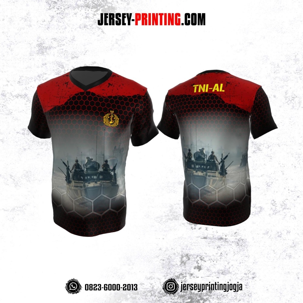 Jersey Militer Tentara TNI AL Angkatan Laut Hitam Merah Abu-abu Motif Honeycomb