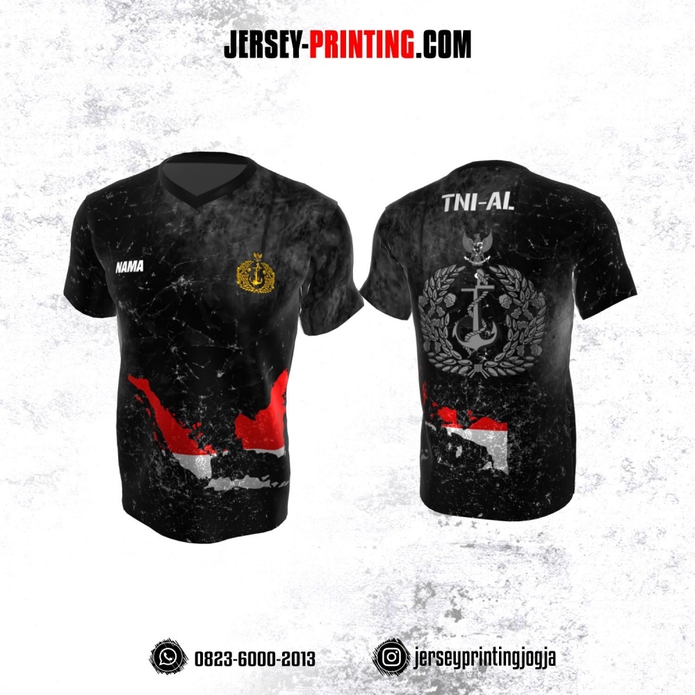 Jersey Militer Tentara TNI AL Angkatan Laut Hitam Abu-abu Merah Putih Motif Bercak dan Peta Indonesia