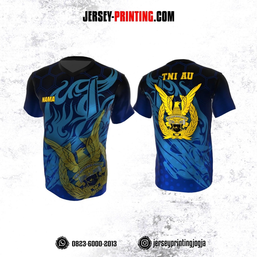 Jersey Militer Tentara TNI AU Angkatan Udara Biru Navy Hitam Motif Hexagon