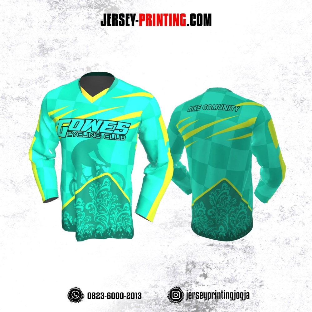 Jersey Gowes Sepeda Hijau Tosca Kuning Lengan Panjang