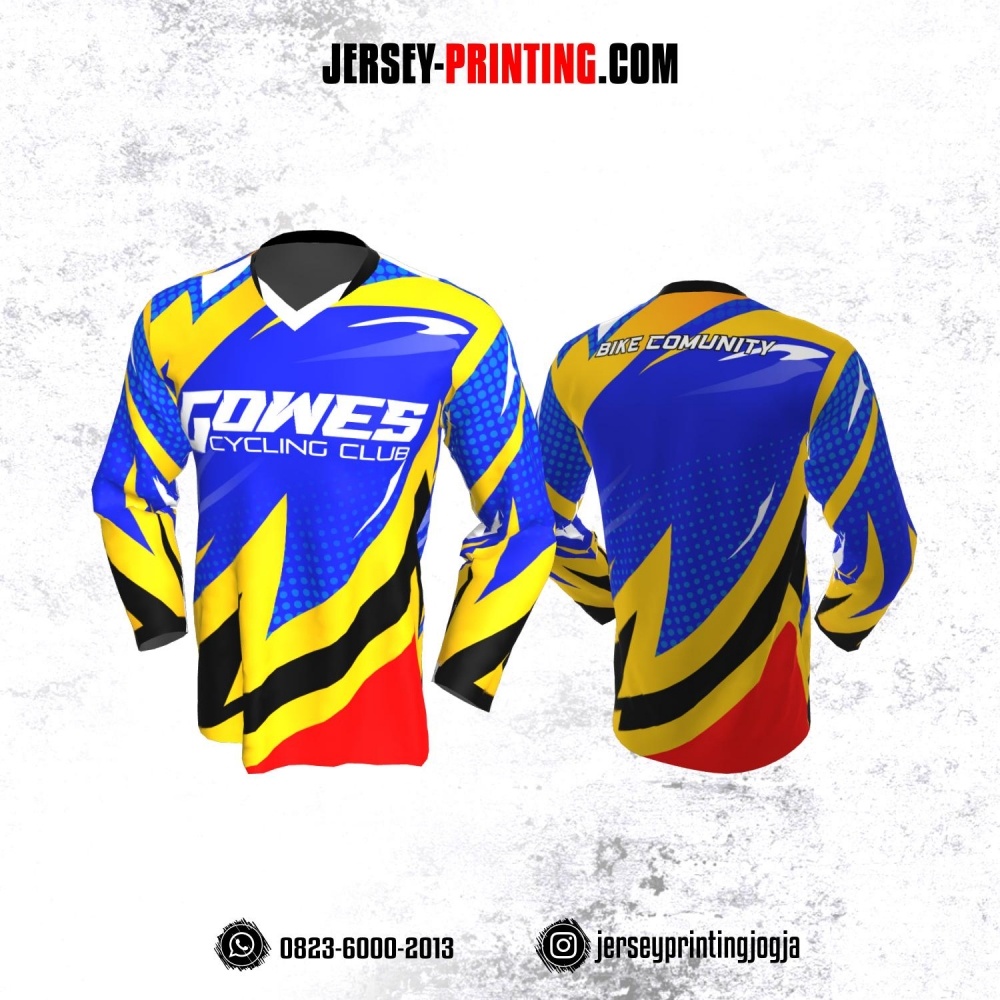 Jersey Gowes Sepeda Biru Kuning Merah Lengan Panjang