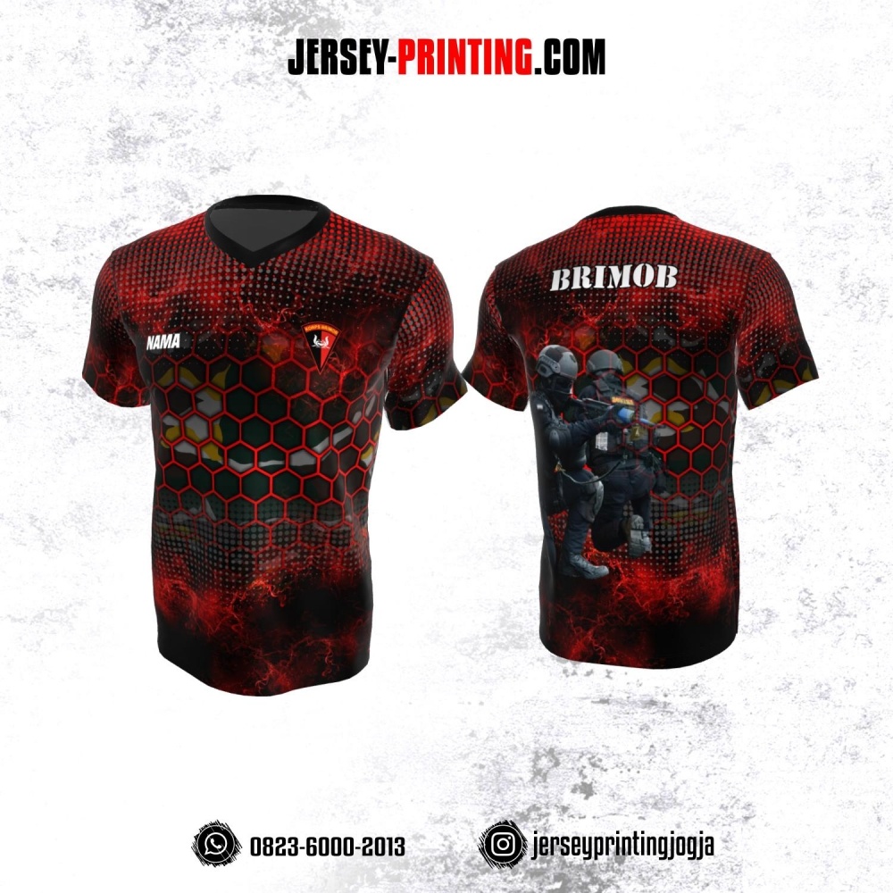Jersey Polisi Brimob Merah Hitam Abu-abu Motif Honeycomb dan Polkadot