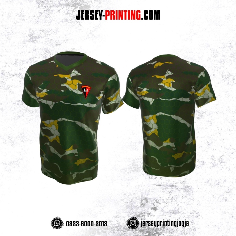 Jersey Polisi Brimob Hijau Coklat Abu-abu Kuning Motif Loreng