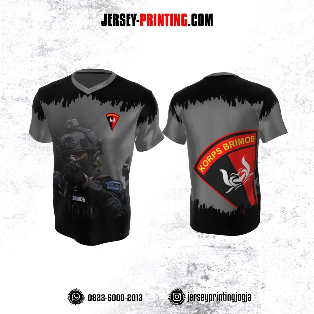 Jersey Polisi Brimob Abu-abu Hitam Motif Brush