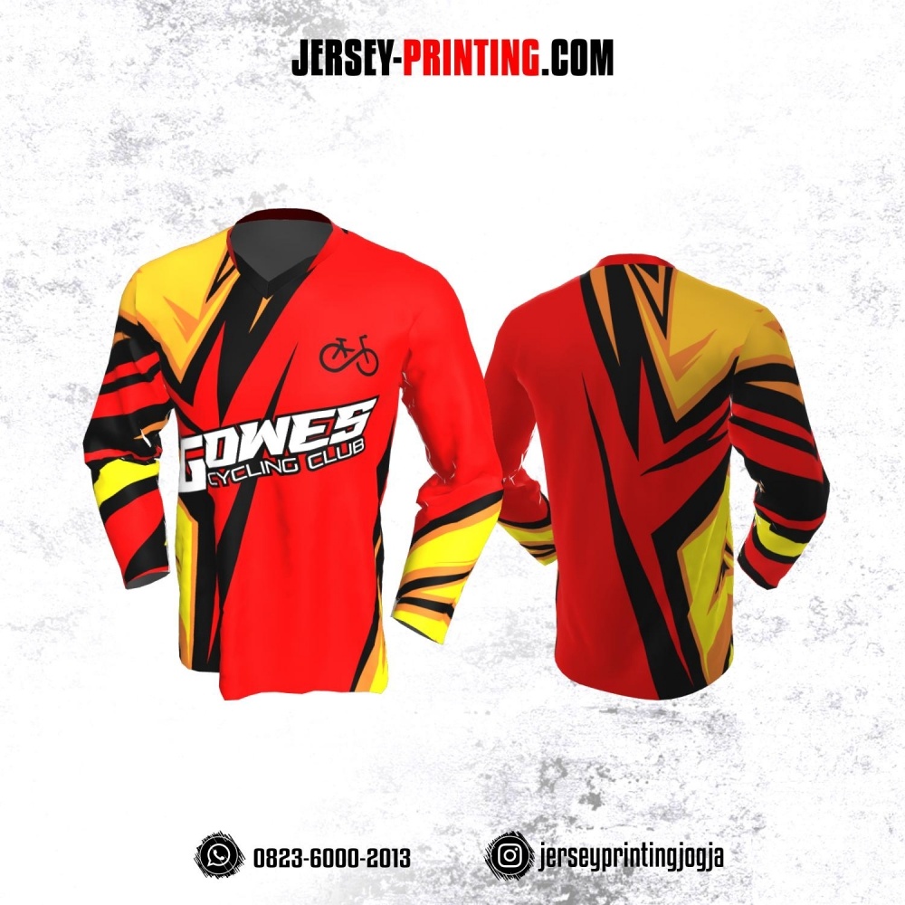 Jersey Gowes Sepeda Merah Hitam Kuning Lengan Panjang