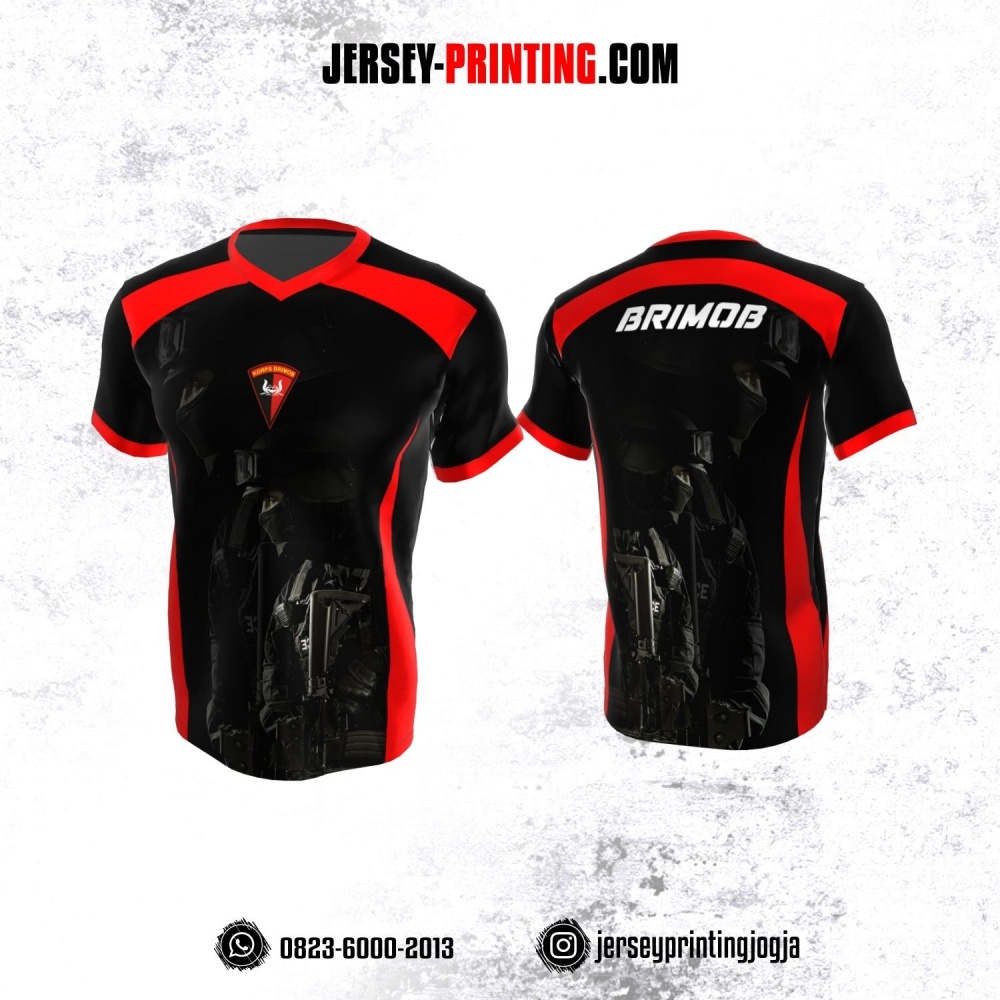 Jersey Polisi Brimob Hitam Corak Merah