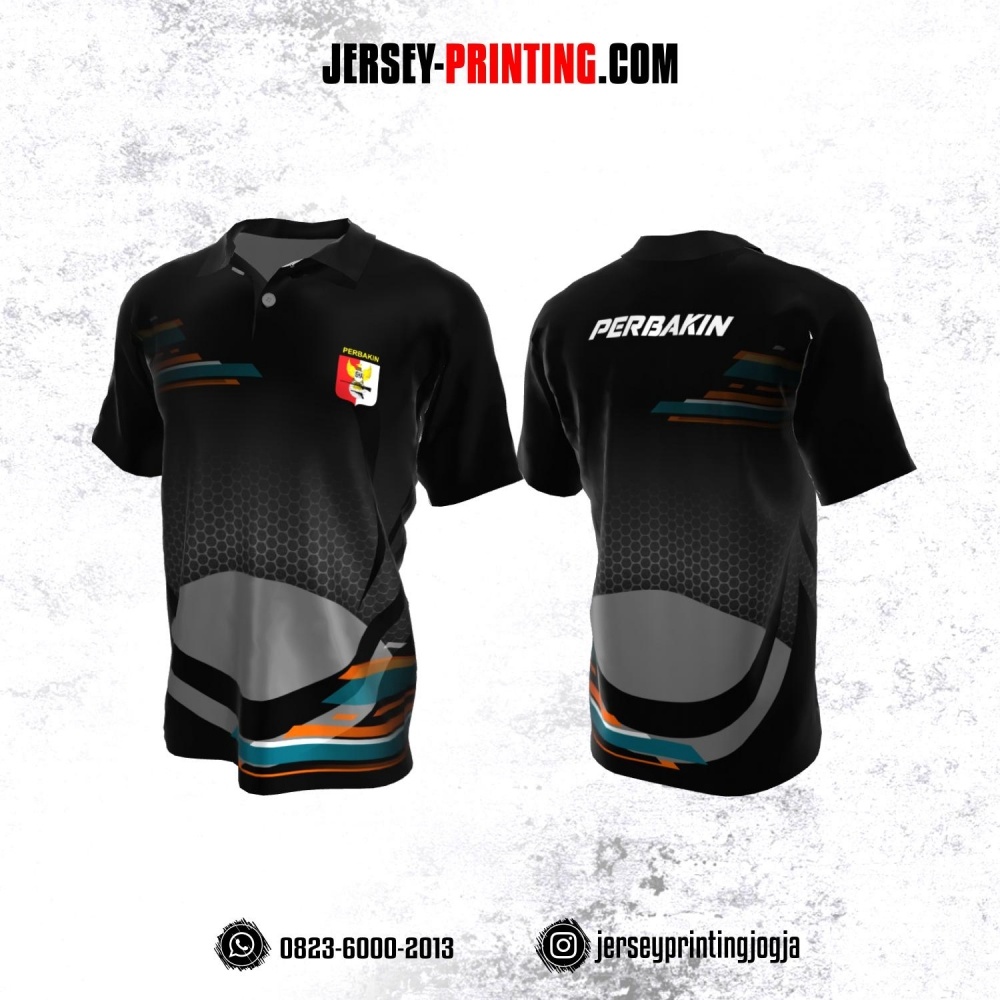 Baju Kaos Jersey Menembak Perbakin Kerah Polo Hitam Abu-abu Tosca Orange Motif Honeycomb