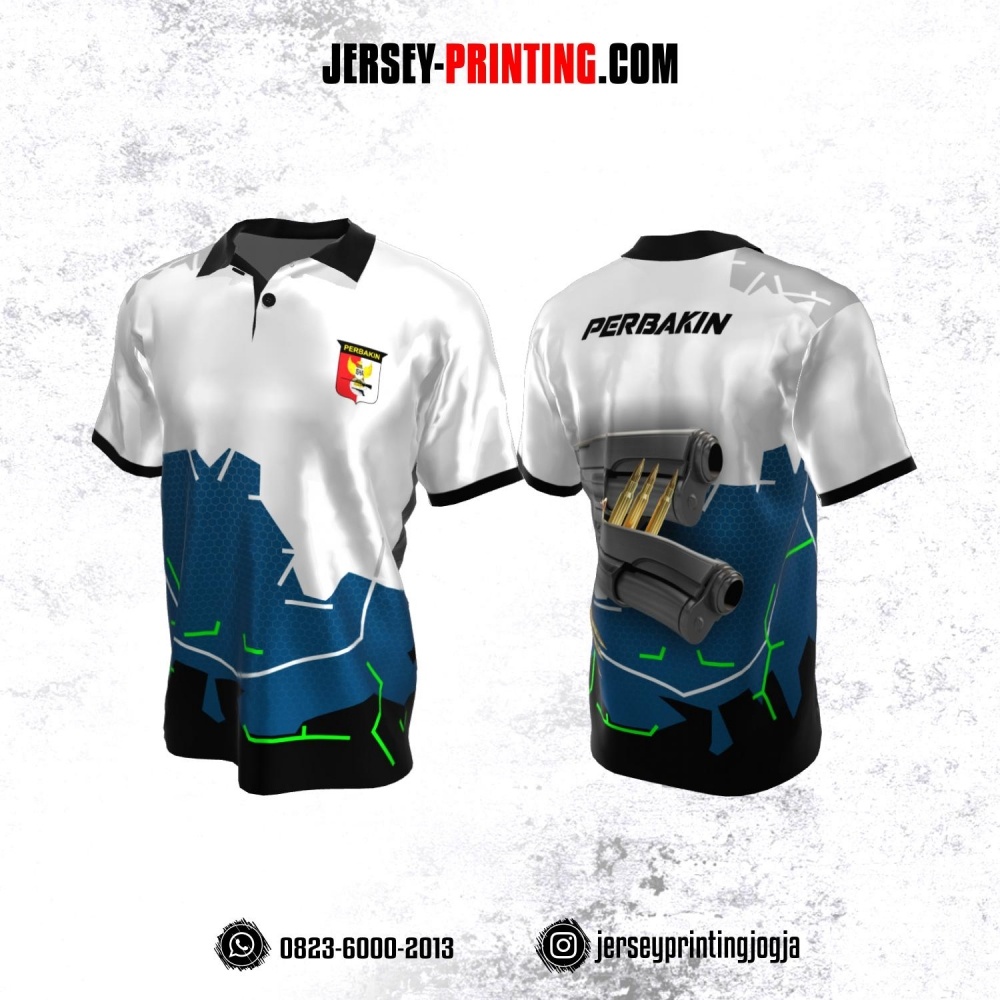 Baju Kaos Jersey Menembak Perbakin Kerah Polo Abu-abu Biru Hitam Hijau Motif Honeycomb