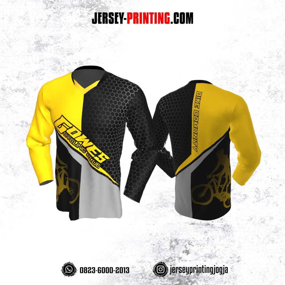 Jersey Gowes Sepeda Kuning Hitam Abu Hexagon Lengan Panjang