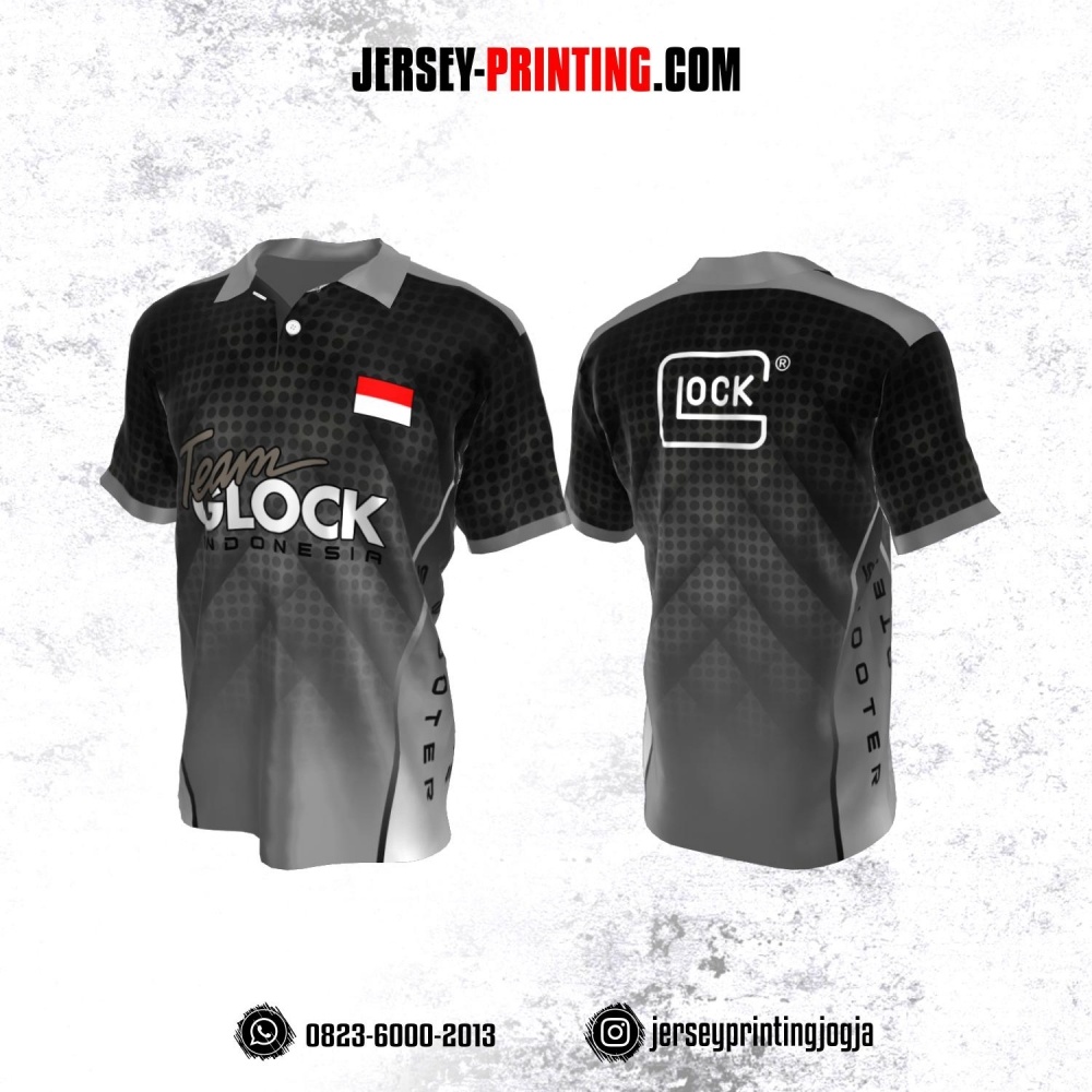 Baju Kaos Jersey Menembak Perbakin Kerah Polo Abu-abu Hitam Motif Polkadot
